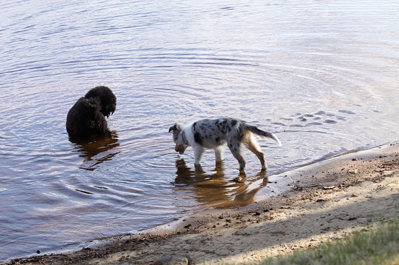 Toinenkin suoritus meni vielä ihan ok, mutta kolmannessa alkoi neiti jo vähän hyytyä. Meillä molemmilla taitaa olla hieman huono kunto? Emännällä kun loppuu puhti, ja vauhti hidastuu, niin koiralla sama homma. :D